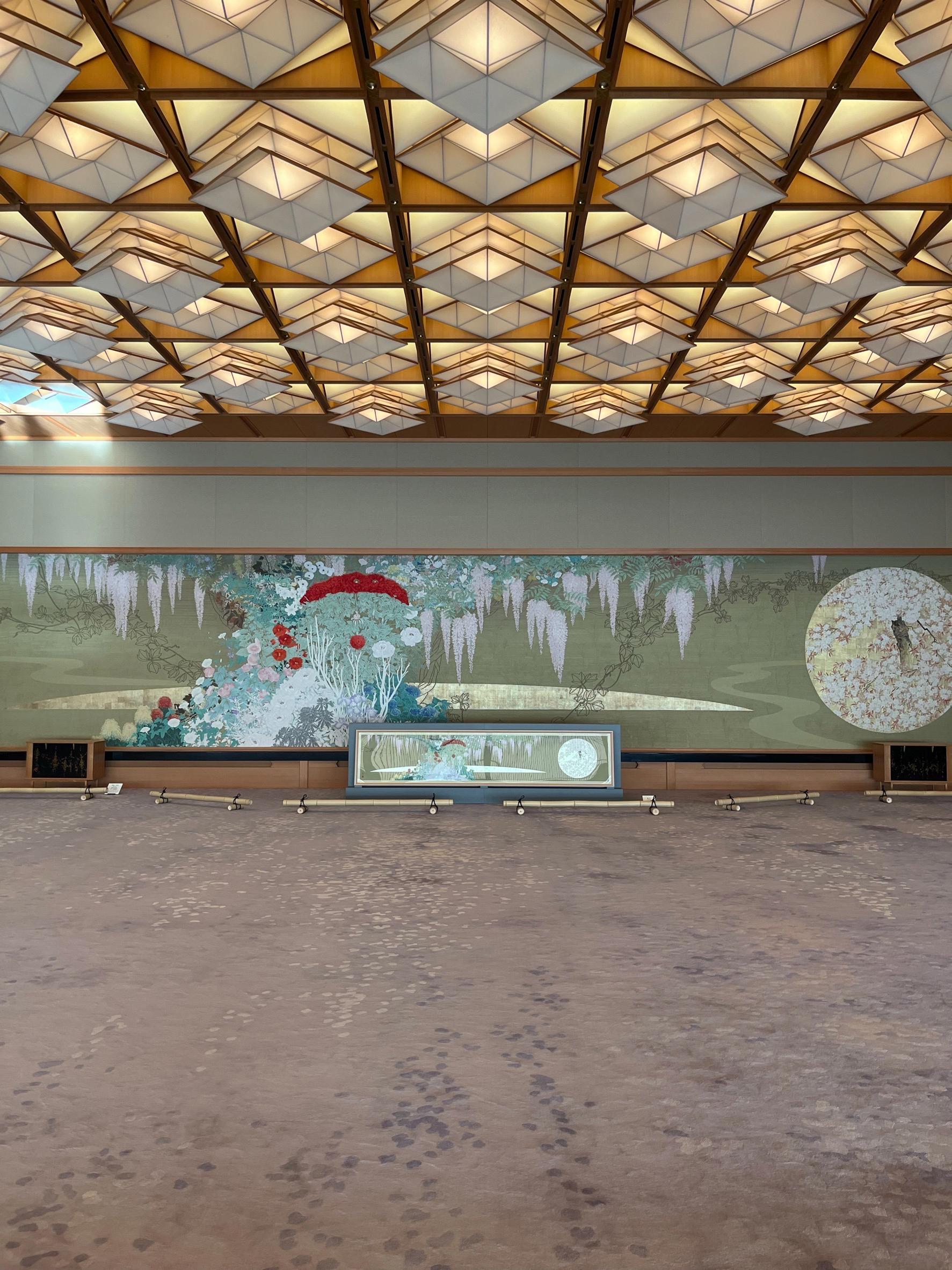 Vor dem Betreten erhalten Sie Kopfhörer. Im Inneren des Gebäudes können Sie über diese Kopfhörer Kommentare in Echtzeit hören, sodass jeder frei herumlaufen und die Erfahrung in Ruhe genießen kann. Wand-zu-Wand-Textilarbeiten, Gitterdecken und lackierte Massivholztische. Hier sind die besten japanischen Handwerkskunstwerke versammelt, mit viel Liebe zum Detail, wohin man auch schaut – eine atemberaubend raffinierte Schönheit. In diesem Jahr feiert das Haus sein 20-jähriges Jubiläum und bietet Sonderausstellungen mit Originalkunstwerken und Handwerkskunst, die normalerweise nicht zu sehen sind, sowie viele spezielle Führungen. Ich denke, es ist eine besonders gute Zeit für einen Besuch bis zum nächsten März.