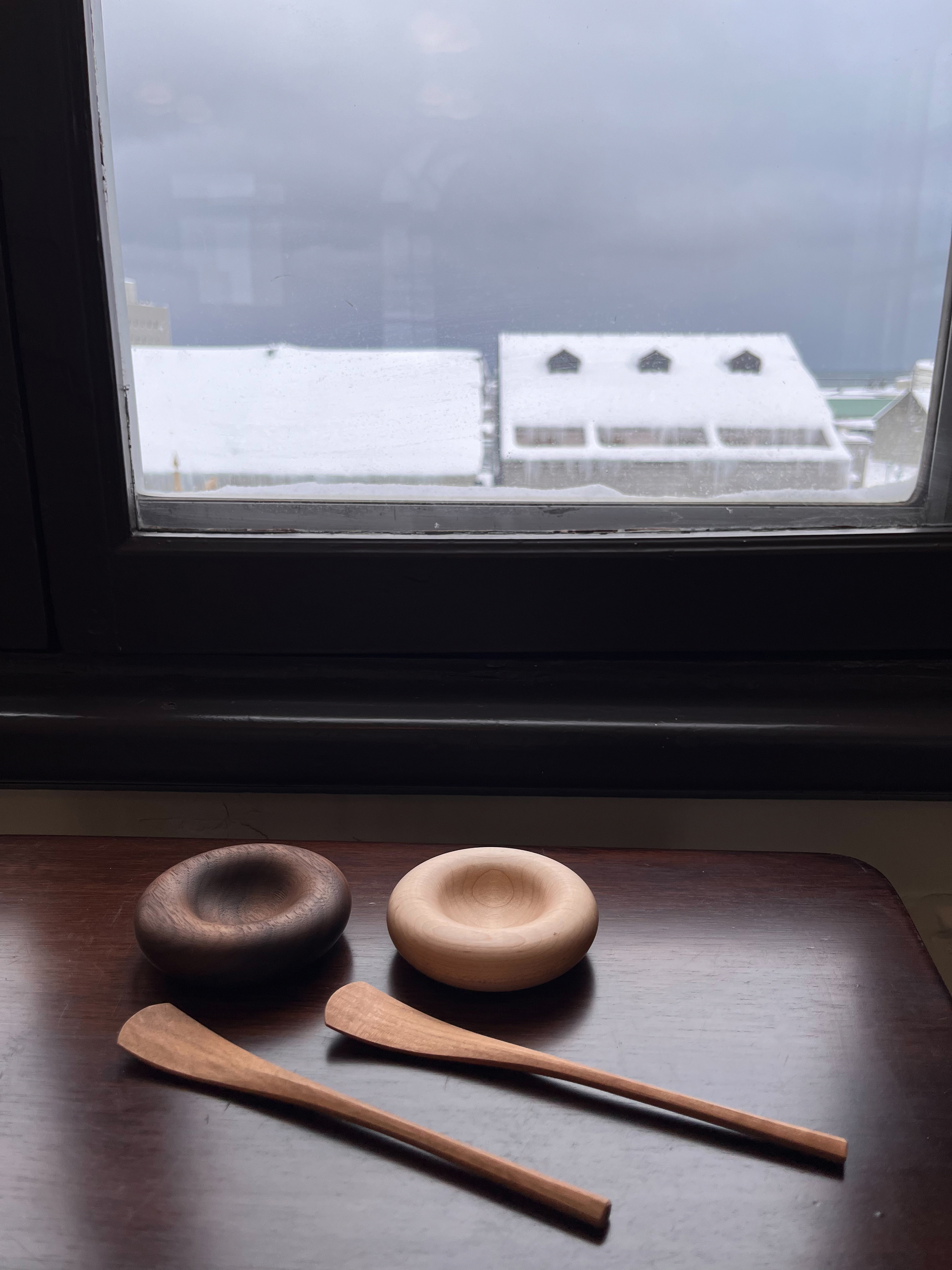 Der Showroom in Otaru präsentiert viele Produkte, mit denen Sie diese natürliche Wärme spüren können. Die Holzschalen von „Sonobe Sangyo“ sind Meisterwerke, die von Handwerkern in ihrer Fabrik in Odawara, Präfektur Kanagawa, sorgfältig fertiggestellt werden — von der Holzauswahl und Formgebung bis hin zur Beschichtung. Die glatte Textur, die dazu einlädt, sie immer wieder zu berühren, und die charmante, abgerundete Form sorgen für Seelenfrieden. Diese Schalen machen den Esstisch zu einem reicheren und angenehmeren Ort. Dank der Urethan-Beschichtung können sie bedenkenlos im Alltag verwendet und mit einem Schwamm und Geschirrspülmittel gereinigt werden. Da Farbe, Maserung und Härte je nach Holzart variieren, bekommt man leicht Lust, verschiedene Varianten zu sammeln. Wir führen auch die massiven „Pomme“-Schalen, die ein beachtliches, natürliches Gewicht haben und auf westlich gedeckten Tischen wunderbar aussehen.