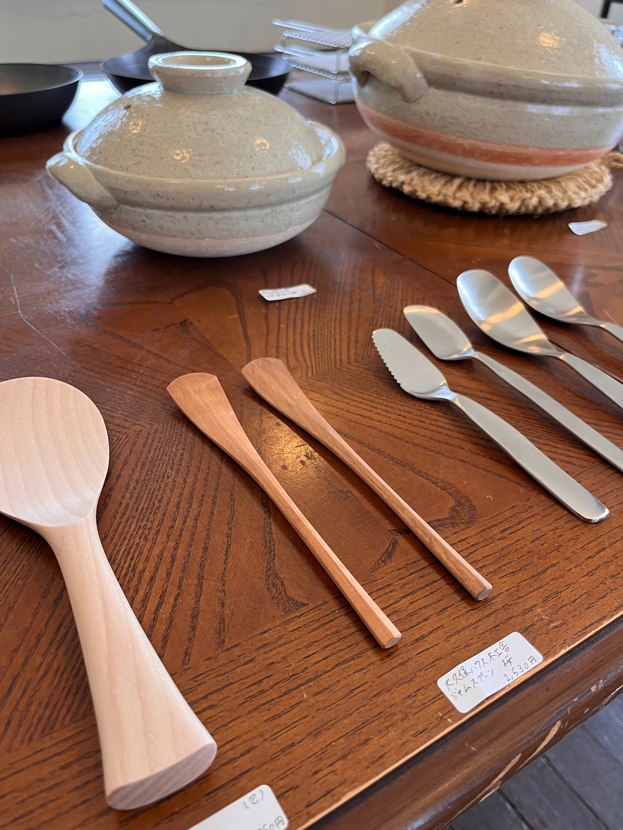 Ein sehr nützliches Werkzeug zum Portionieren von Marmelade ist der Marmeladenlöffel von „Okubo House Mokkosha“ in Matsumoto, Präfektur Nagano. Mit seiner spatelartigen Form kann er die im Boden eines Glases verbliebene Marmelade ohne Mühe aufnehmen. Da er akribisch mit einem Hobel geschnitzt wird, ist die Oberfläche seidig glatt. Neben Marmelade ist er vielseitig genug für die Verwendung mit pastösen Gewürzen und Saucen.